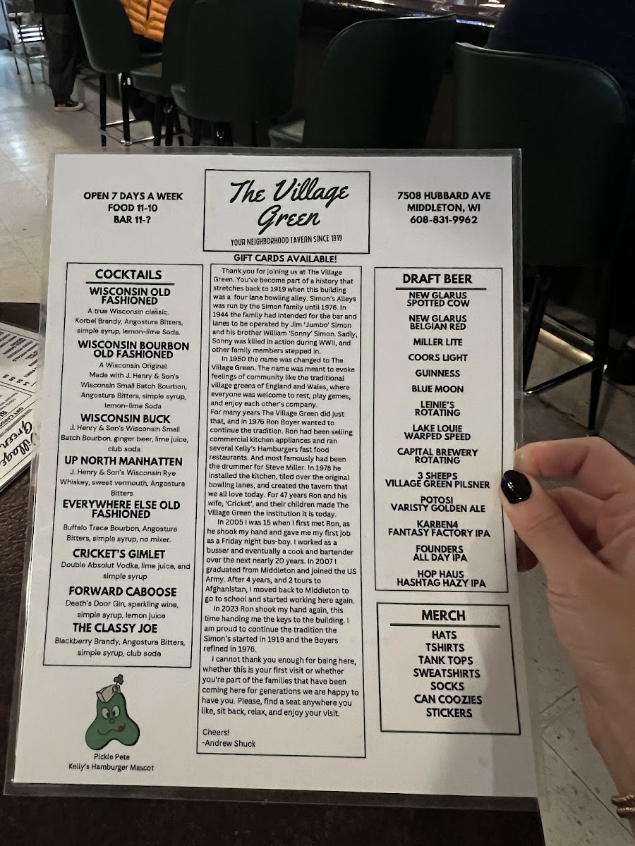 Welcome to The Village Green, a hidden gem located at 7508 Hubbard Ave, Middleton, WI. Known for its warm, inviting atmosphere and delicious comfort food, this local favorite shines with its diverse menu. The highlights include Ron's Spicy Chili and hearty Seafood Gumbo, perfect for warming up any chilly day.